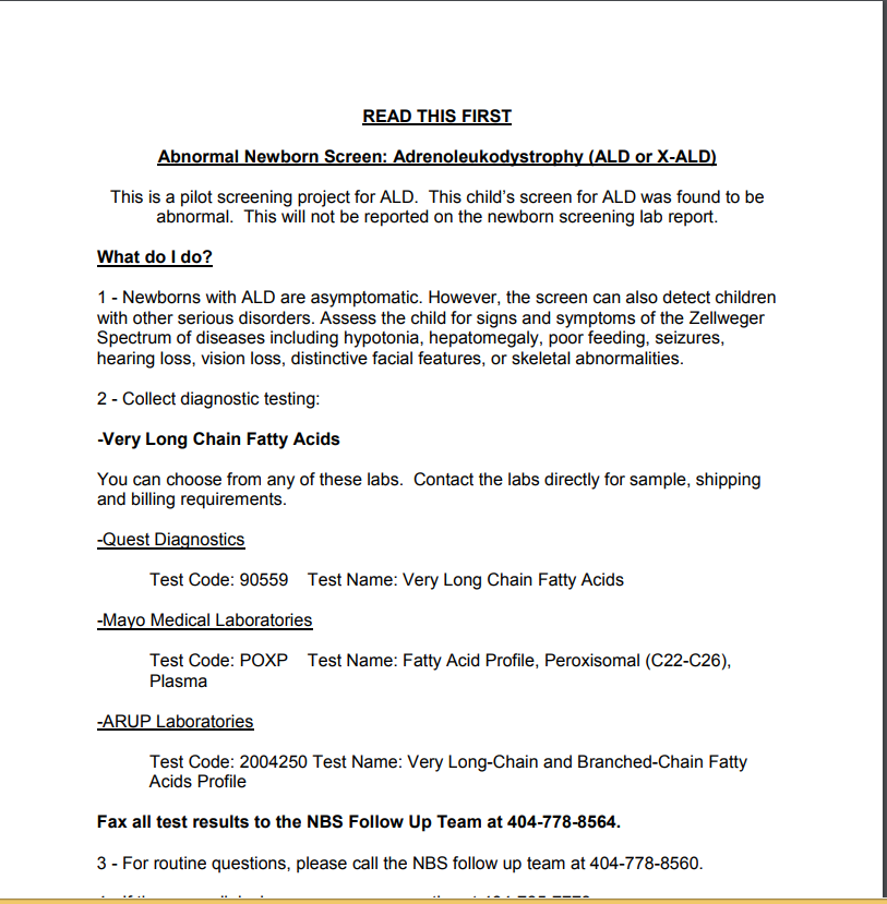 Abnormal Newborn Screen: Adrenoleukodystrophy (ALD or X-ALD) Follow-Up