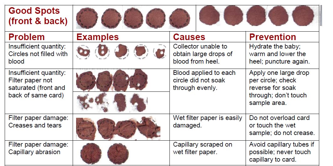 This poster, developed by the Montana Department of Public Health and Human Services, provides visuals for proper bloodspot collection. This poster also includes examples of insufficient samples and offers solutions on how to prevent specific collection issues.