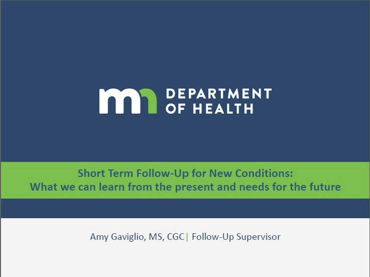 This is a presentation provided by the Minnesota Department of Health during the new disorders meeting in June, 2017, describing short-term follow-up for new conditions.