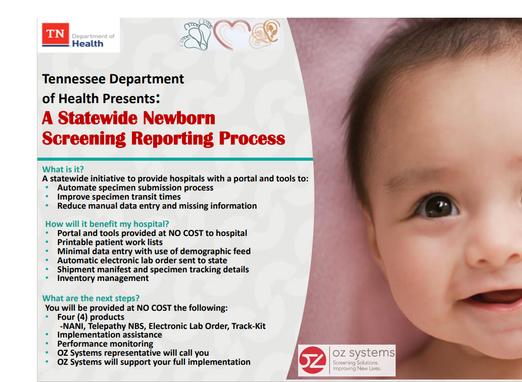 This one pager was put together by the Tennessee Department of Health for communicating to hospitals about OZ Systems.