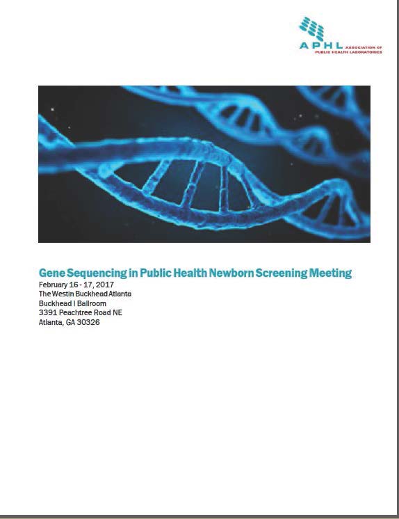 The 2017 Gene Sequencing in Public Health Newborn Screening Meeting, co-sponsored by APHL, CDC and HRSA, addressed the current status of gene sequencing in newborn screening (NBS), and identified barriers and potential solutions for the successful incorporation of gene sequencing into NBS. Meeting attendees included NBS laboratory directors and follow-up managers.