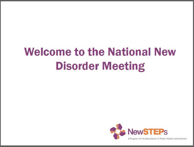 Welcome to the National New Disorders Meeting: June, 2017